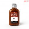 Většina barbeque omáček má výraznou kyselou chuť a proto jsme naši omáčku vyrobili na ovocném základě - jablečném džusu a šťávě z čerstvých pomerančů. K tomu jsme přidali bourbon Four Roses a dochutili zauzenou chilli paprikou Bhut Jolokia. Díky unikátní nasládlé ovocné chuti se stal z naší BBQ bestseller!